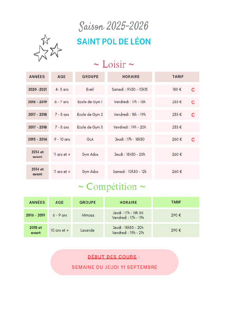 LES PLANNING « LOISIRS » / 2025 – 26